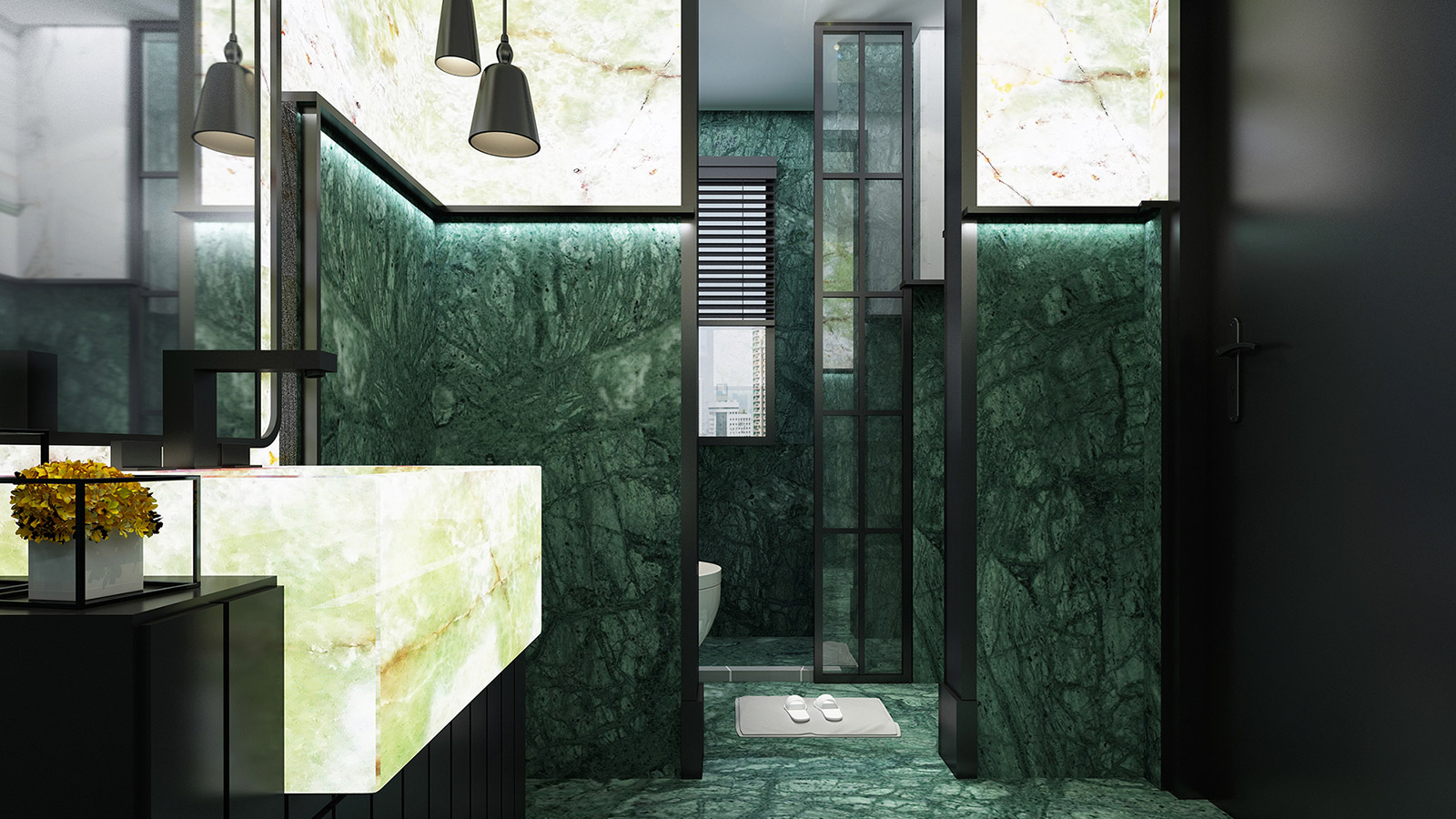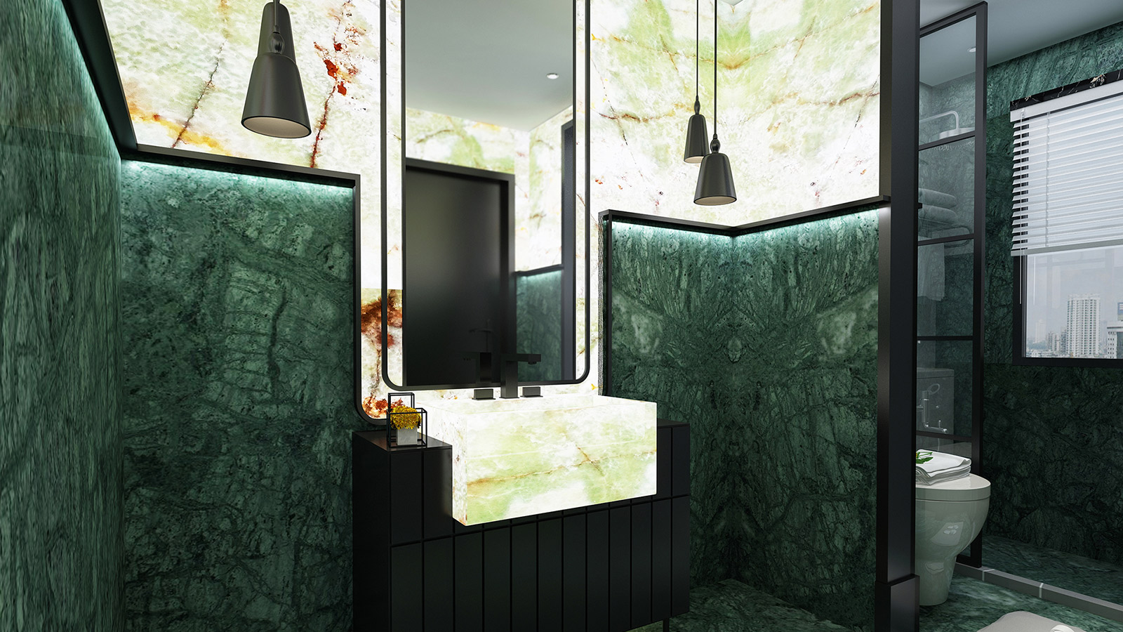 Green Onyx is ideal for wall claddings, TV units, bathroom vanities, feature walls, and flooring, offering a sophisticated aesthetic. Its light-transmitting properties make it especially valuable for illuminated surfaces, adding depth and dimension to high-end designs.