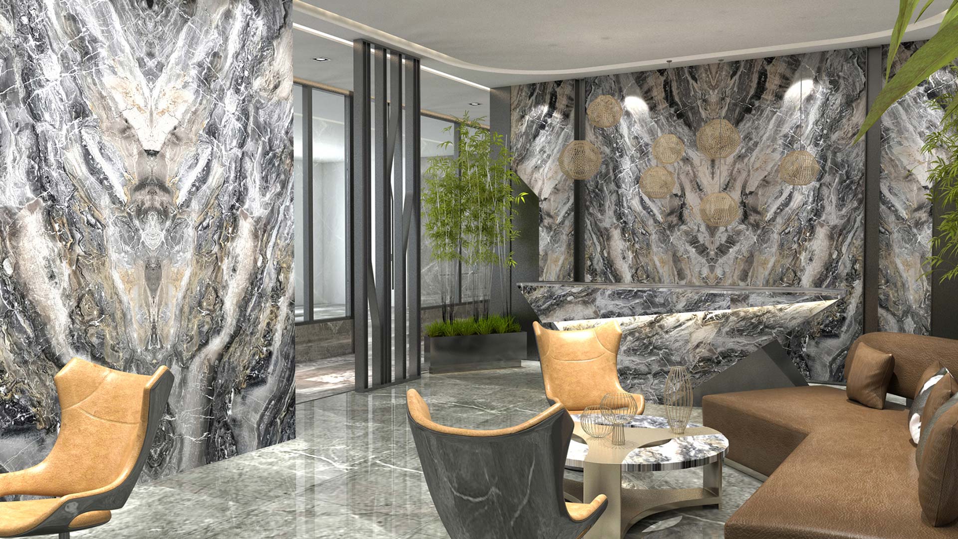 Grizio Light Marble is well-suited for wall claddings, TV units, bathroom vanities, feature walls, and flooring, offering depth and character to interior spaces.