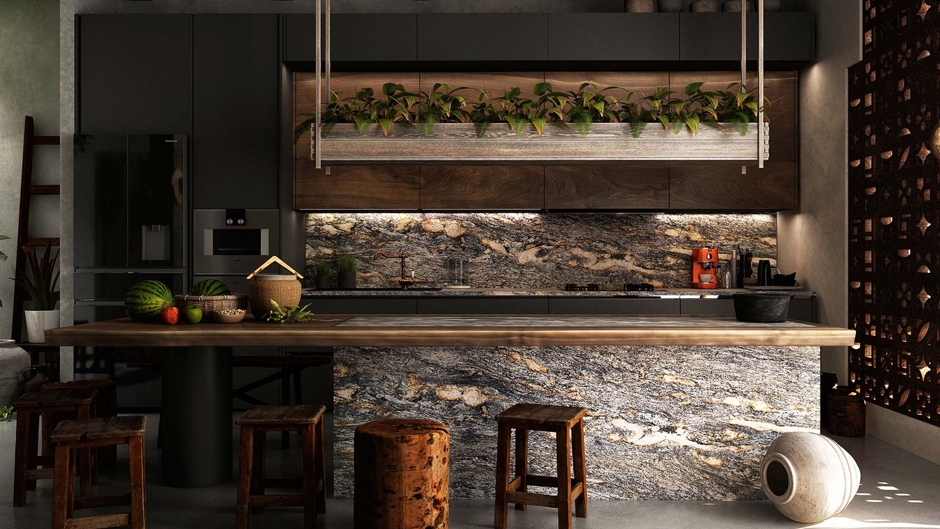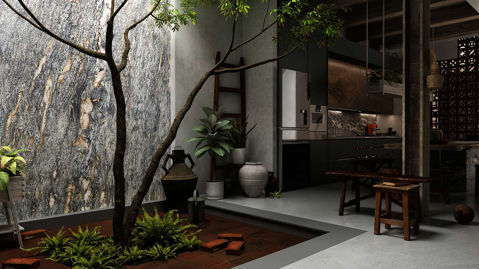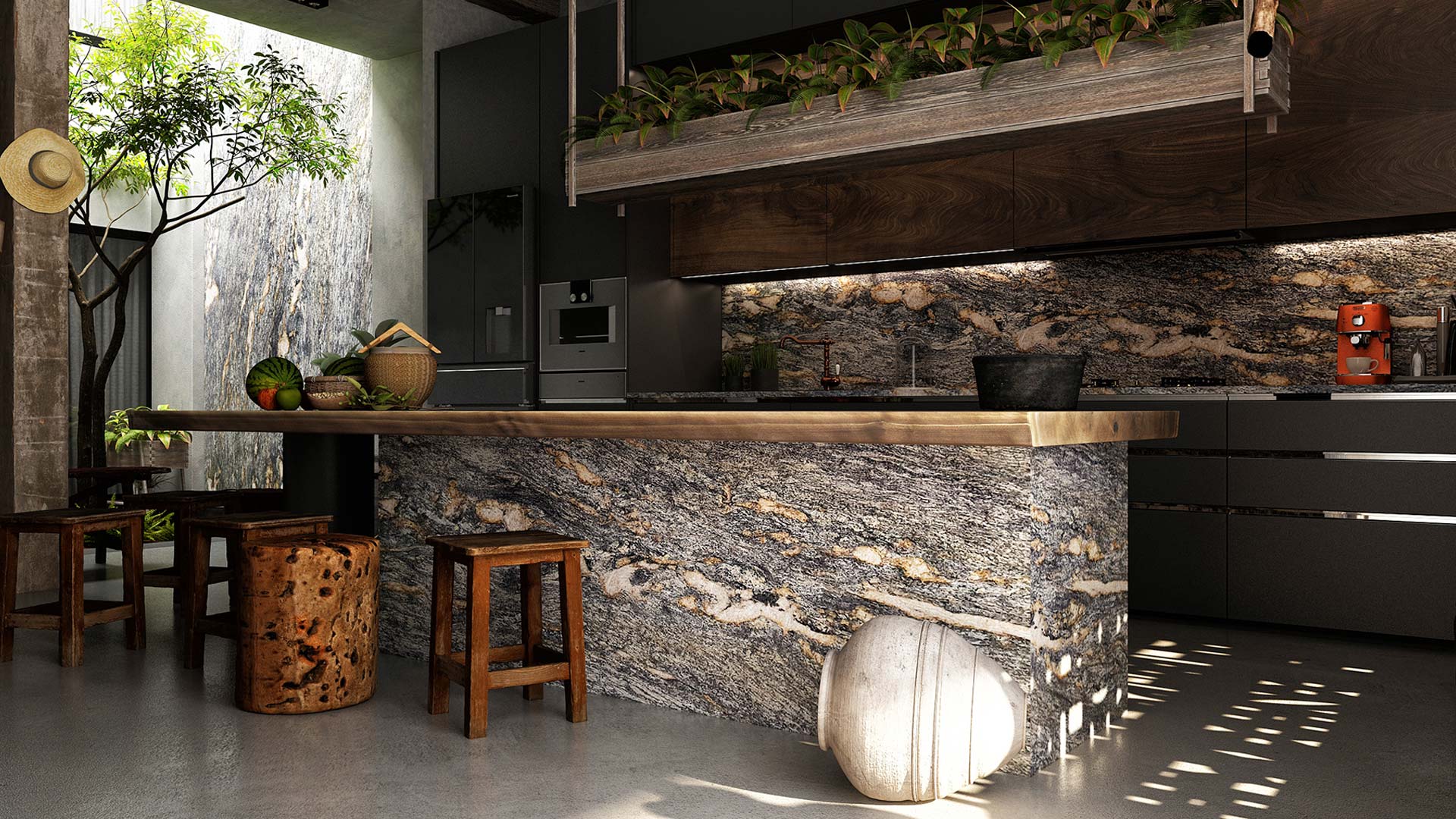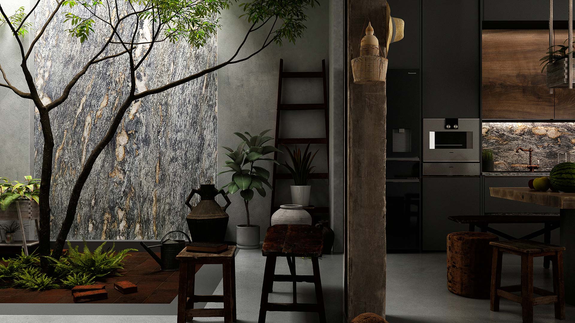 Metalicus Granite is perfect for kitchen countertops, wall claddings, TV units, statement flooring, bathroom vanities, and exterior applications, offering both visual depth and long-lasting durability.
