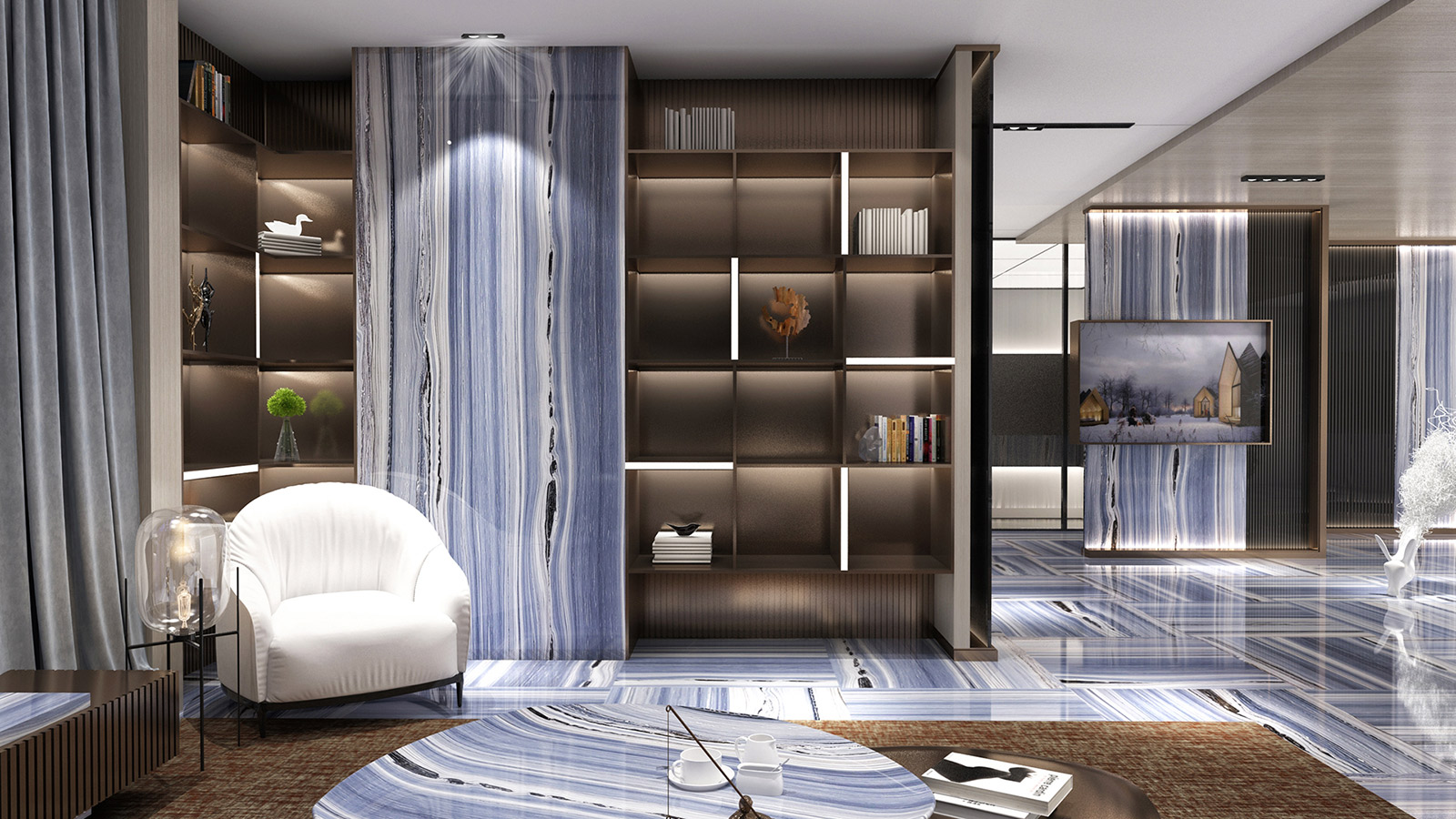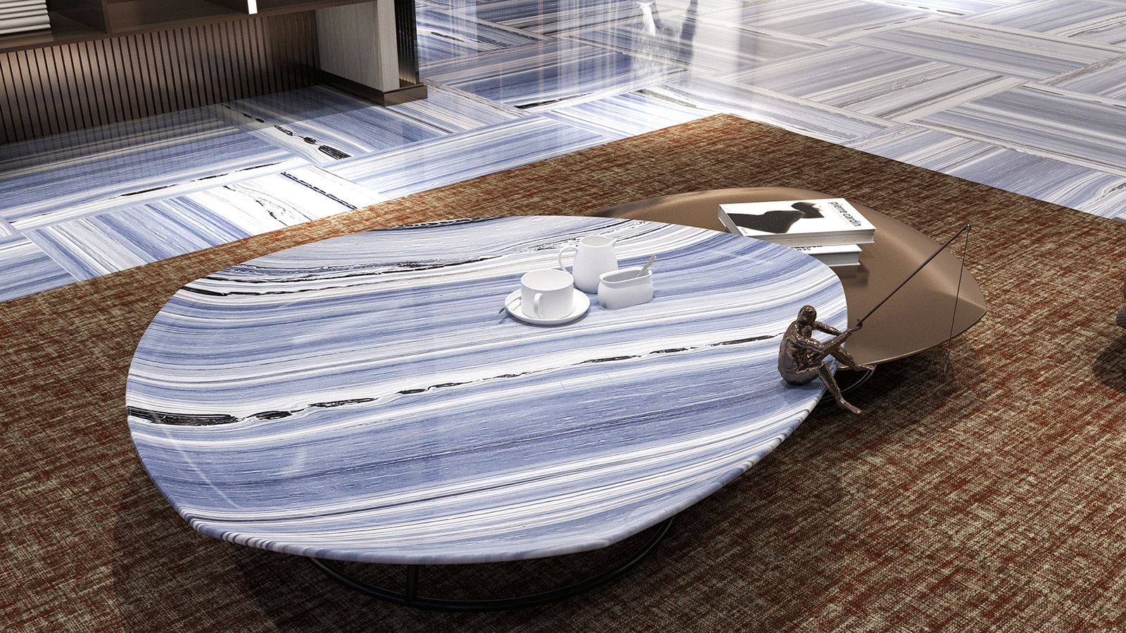 Palissandro Blue Marble is ideal for wall claddings, TV units, bathroom vanities, feature walls, and flooring. Its distinct veining and cool-toned palette make it a preferred option for creating refined and contemporary interiors.