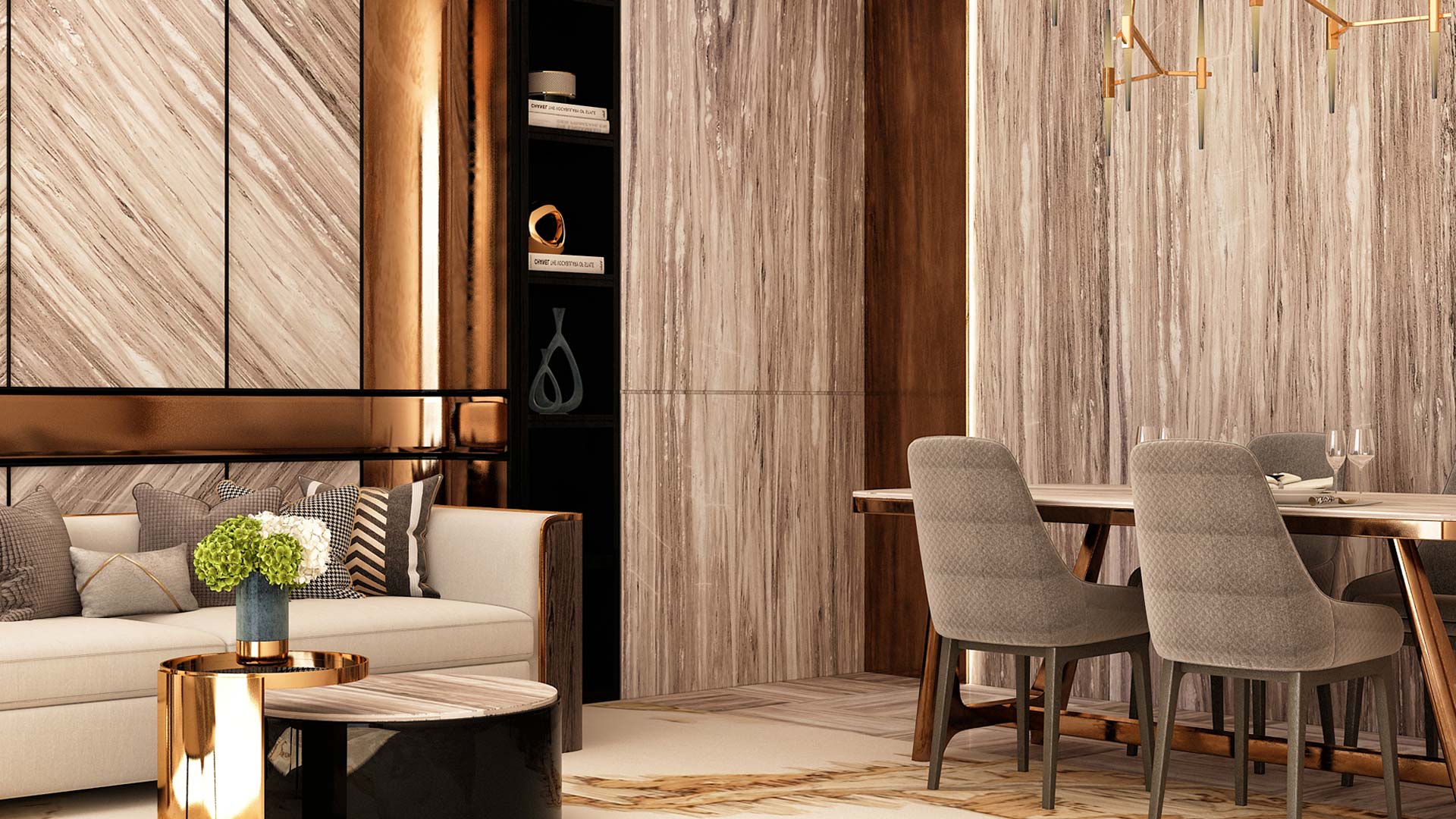 Palissandro Brown Wein Marble is well-suited for wall claddings, TV units, bathroom vanities, feature walls, and flooring, bringing a contemporary and elegant touch to interior spaces.