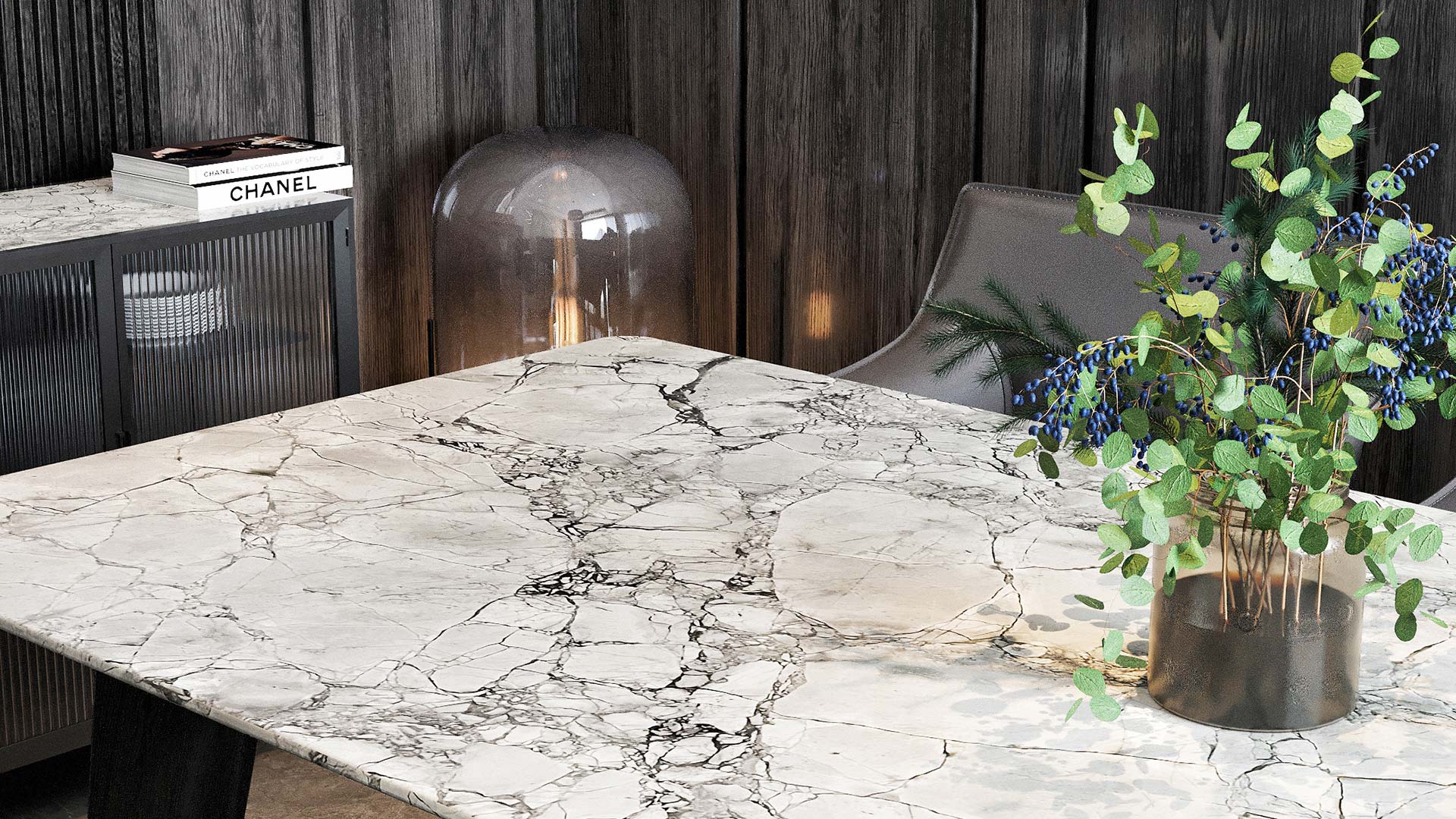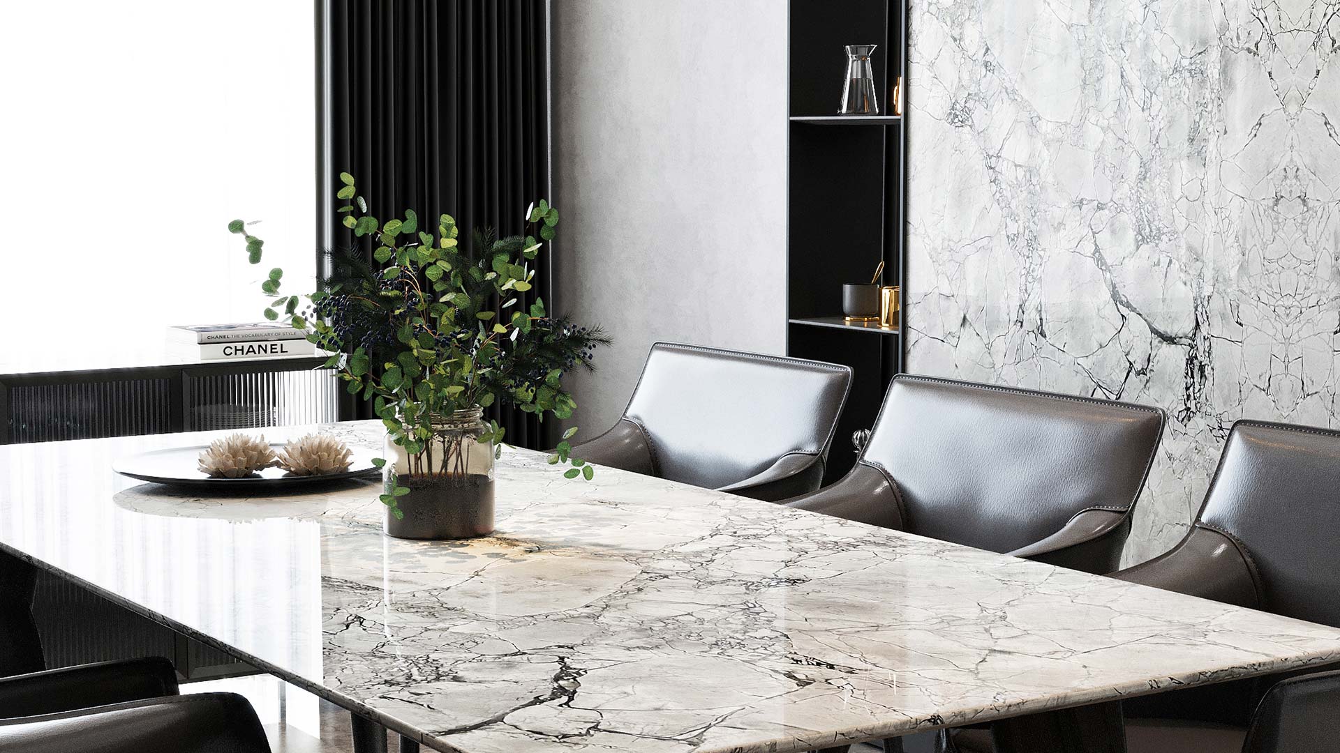• Distinctive Veining: A balance of bold gray patterns on a refined white base.